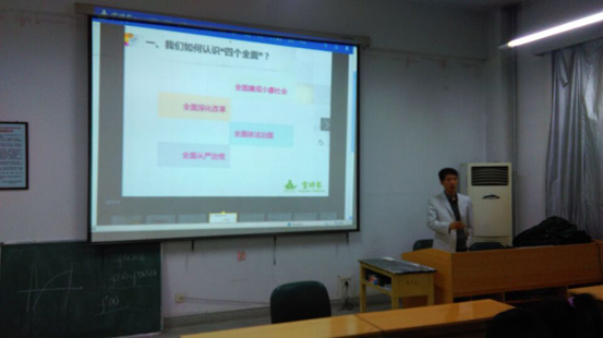 3月31日,本科员工第四党支部书记杨志成老师为入党积极分子培训班学员做了“认真学习准确把握“四个全面”的战略布局”专题辅导报告。杨志成老师从“四个全面”战略布局的形成过程、逻辑关系以及科学内涵和现实意义等方面,进行了系统讲解。