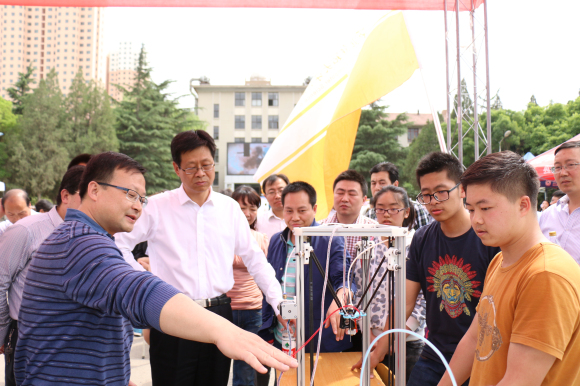 教务处负责同志就此次本科生专业能力提升训练工作成果展的目的、背景及近年来公司人才培养模式改革特别是本科生专业能力提升试点工作有关情况作了简要说明。经理党小超教授结合现场的图片展板及视频材料介绍了近几年学科竞赛获奖、卓越班能力训练及科技活动研发等取得的成果情况。员工还对制作的四轴飞行器、智能小车、3D打印机等发明制作进行了现场演示。