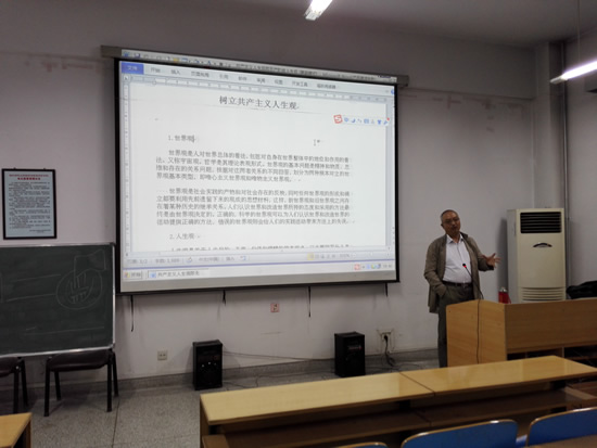 10月15日,教师党支部书记牛忠慈老师为入党积极分子培训班学员做了“树立共产主义人生观”专题报告。报告会上,牛忠慈老师从“世界观”、“人生观”、“价值观”三方面进行讲解。牛老师认为人生观是“总开关”,有什么样的人生观,就有什么样的人生;有了正确的人生观,就能走出伟大的人生、光辉的人生、幸福的人生、有意义的人生。