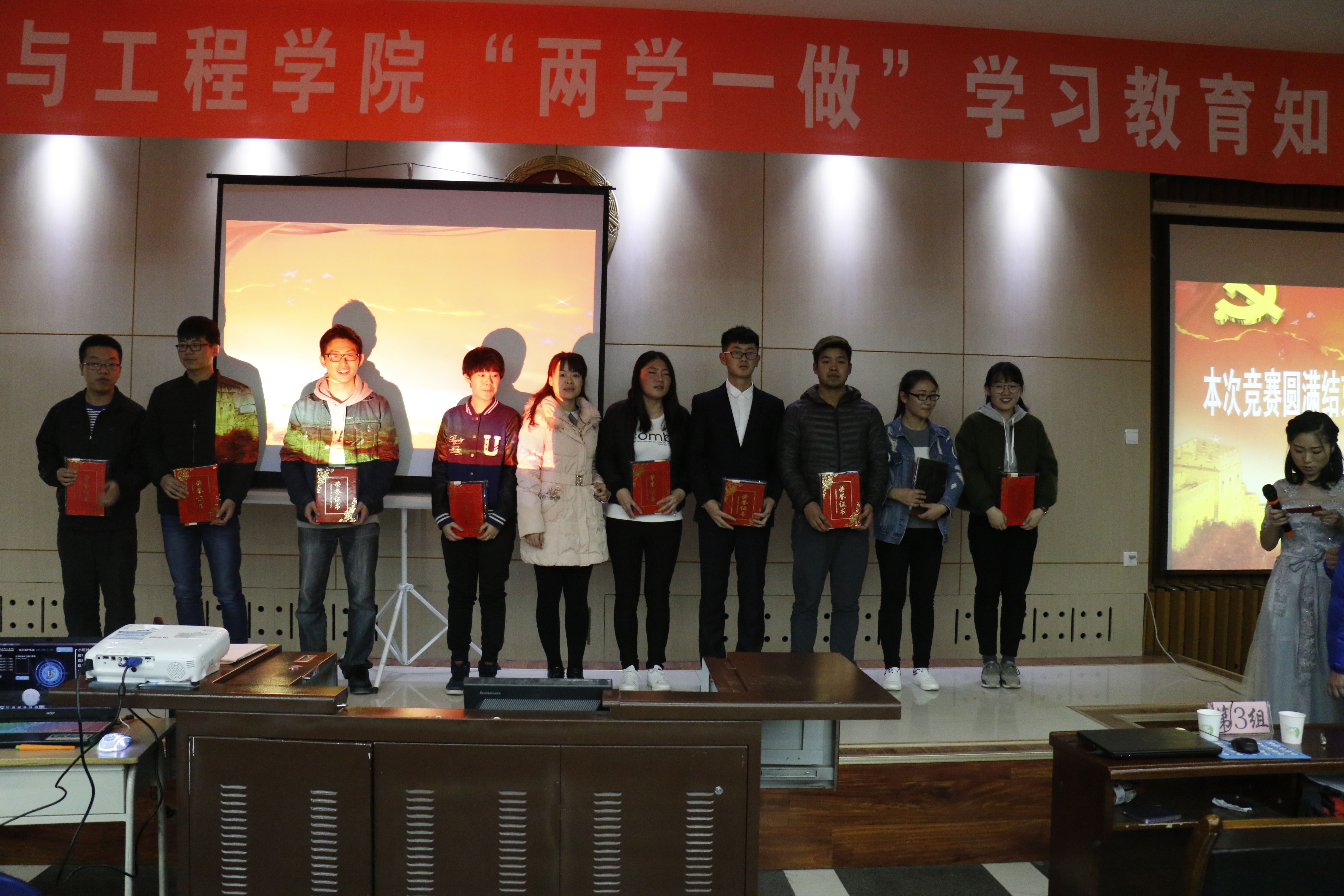 紧张的比赛持续了近2个小时,通过激烈角逐,最终本科生第四党支部代表队以优异的成绩位居第一,排在第二、三名的分别是本科生第三党支部、研究生第一党支部代表队。公司对参赛代表队分一、二、三等奖进行了表彰奖励,并根据知识竞赛活动组织开展情况评选表彰了3名优秀组织者、3名优秀选手。