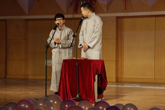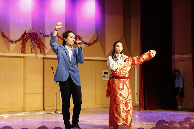 颁奖结束后魔术社的同学给大家带来了魔术表演,宿管委的同学也给大家带来了T台秀《梦回唐潮街》,16软件2班的孙玉卓和满天睿等同学又给大家表演了情景剧《梦幻西游》,之后14计师2班的同学们表演了新疆舞《来吧,姑娘》,晚会最后是歌曲串烧节目,研究生张昱等给大家演唱了《我要你》《孙大剩》两首歌曲,谭朵、卢晨明演唱了英文歌曲《love the way you lie》,达颖才和李岚用藏语和粤语演唱了《喜欢你》,王家政和宗新鹏用《告白气球》这首歌把晚会带到了最终的高潮。最后晚会在公司全体团委员工会干部精心准备的配乐诗《我是中国人》的朗诵中完美落下帷幕。