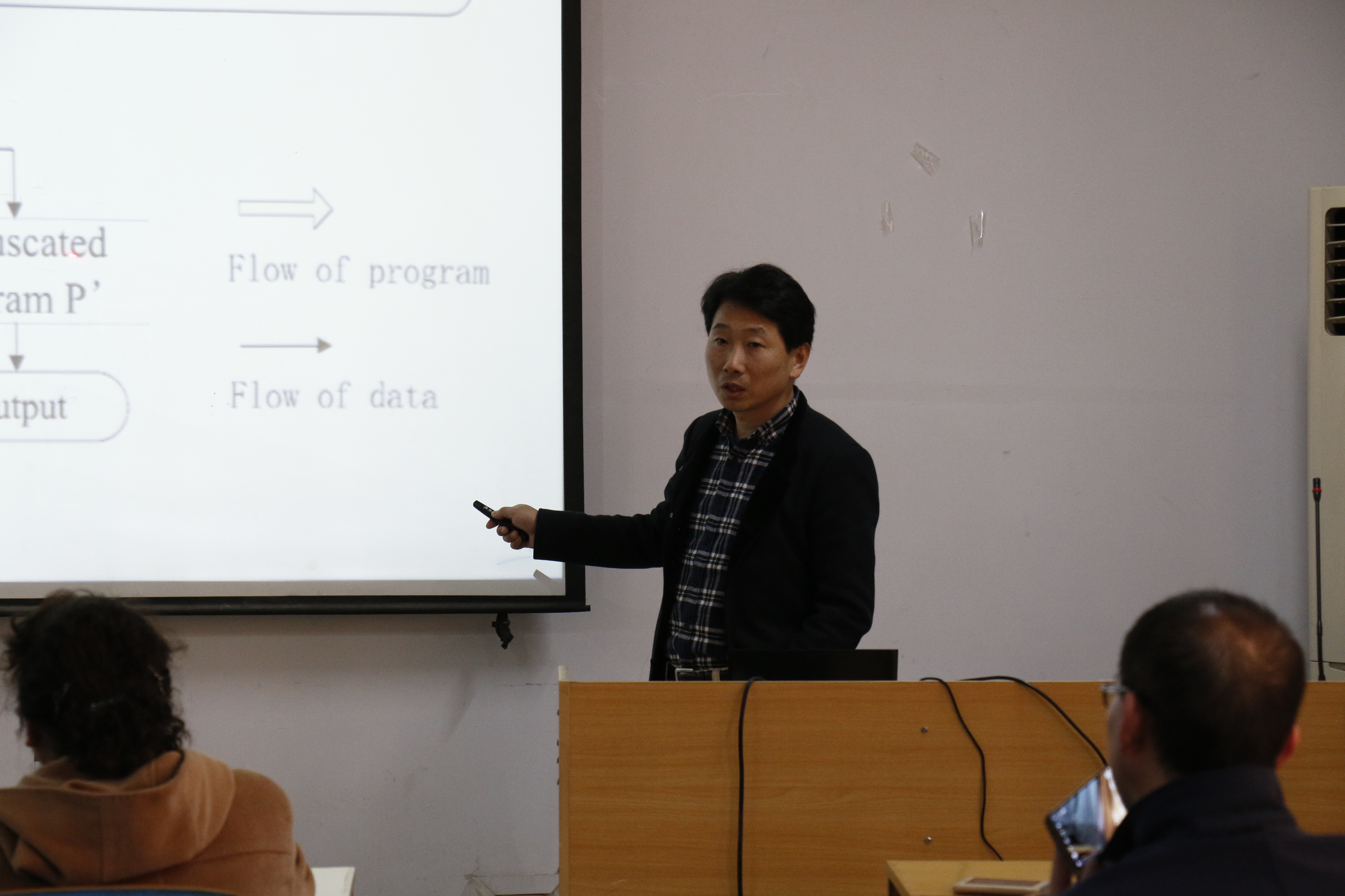 张教授的报告深入浅出,耐人寻味,简明扼要地为师生讲解了有关密码学中程序混淆模型的相关知识及安全混淆重加密算法的思路,同学们深受启发。