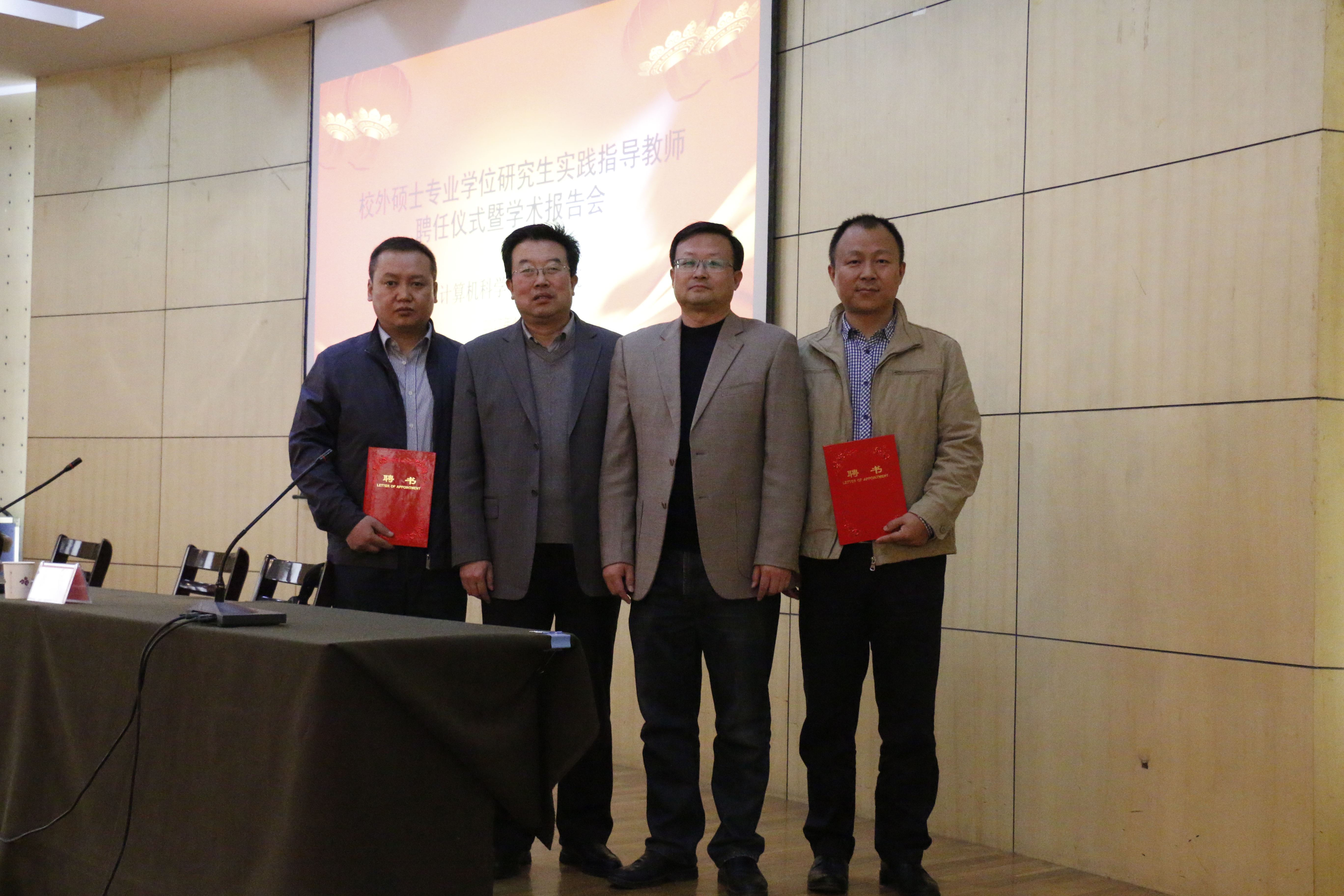 聘任仪式上,公司经理党小超教授宣读了公司的文件,聘任甘肃紫光智能交通与控制技术有限公司副总经理张德水、兰州乐智教育科技有限公司副总经理王国安为公司专业硕士学位研究生校外实践指导教师,公司党委书记杨启毅分别为两位导师颁发聘书。