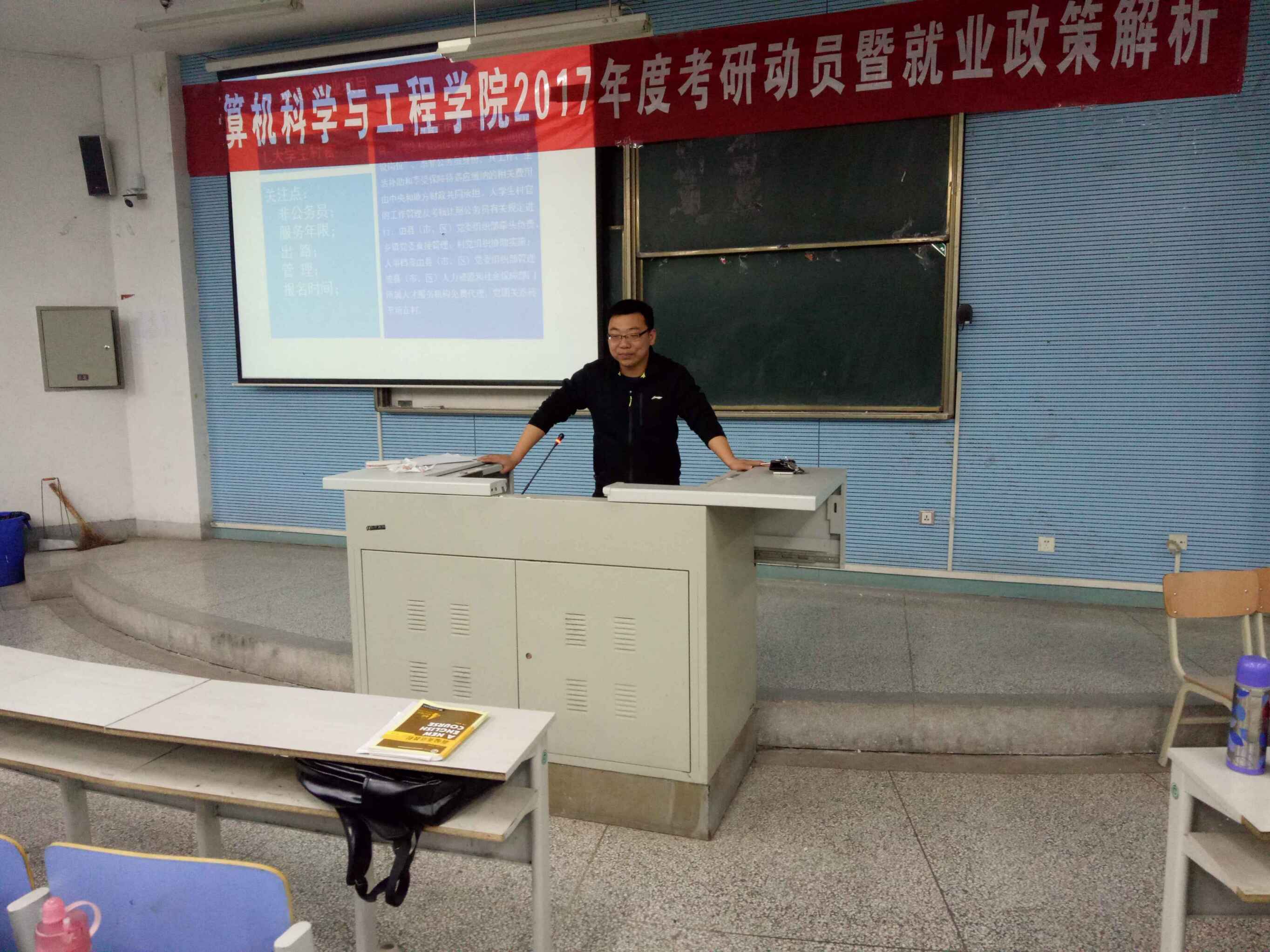 会上,王彩芬教授重点解析了攻读计算机专业研究生的优势、目前考研的形势,鼓励同学们考研,尤其鼓励同学们报考本校研究生;胡炜老师重点讲述了现代老员工的就业形式,考研、就业实例和政策性就业的具体情况,如选调生、农村教育硕士、特岗教师、三支一扶、一万名,进村进社、事业单位、公务员等大家关注的岗位招聘政策、就业环境和福利待遇等。