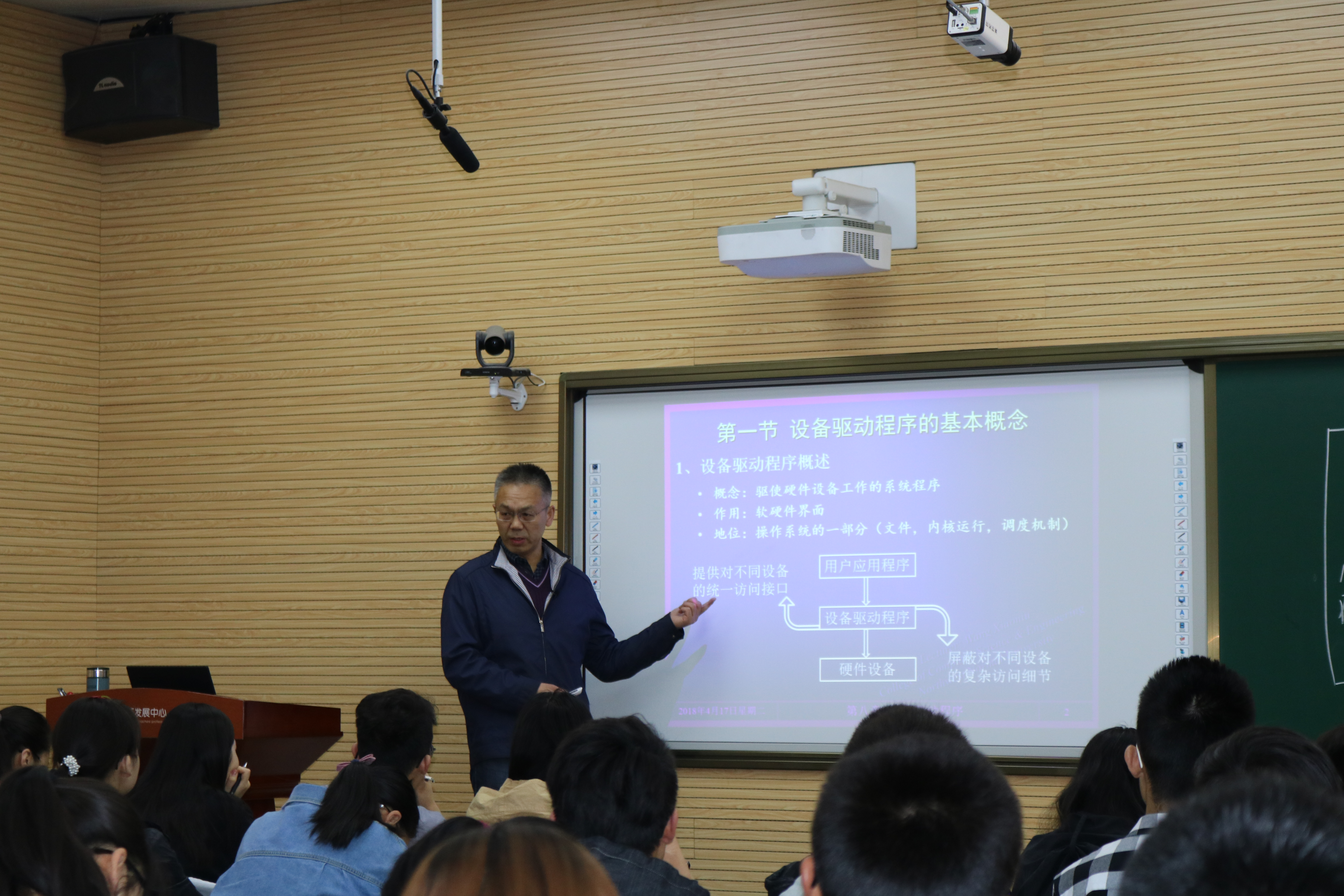 此次观摩课的课程为《嵌入式系统》。王小牛老师在本次课程中主要讲授了设备驱动程序的有关内容。首先通过对嵌入式系统开发环境教学内容的复习,引入学习设备驱动程序的重要性,接着主要介绍了设备驱动程序的概念,设备驱动程序的框架以及设备驱动程序的执行过程。王老师在上课过程中能够很好的通过举例,让同学们感受到设备驱动程序的重要性,并通过Led灯的驱动实例让大家了解了设备驱动程序的框架及组成,为以后编写设备驱动程序打下了坚实基础。王老师鼓励同学们,应该以虔诚的心去学习驱动程序设计,感谢那些为我们开发非常复杂驱动程序的工程师们。课后,参加观摩课程的老师对本次观摩课程进行了现场点评。
