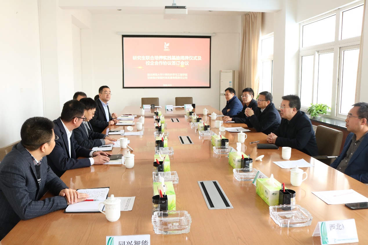 2019年11月21日,公司和甘肃同兴智能科技发展有限责任公司(以下简称“同兴智能公司”)举行研究生联合培养基地签约及挂牌仪式。同兴智能公司执行董事、党委书记姚锋、副总经理王伟德、纪委书记兼工会主席郝强及相关职能部门主要负责同志,公司党委书记杨启毅、经理党小超、甘肃省物联网工程中心副主任马满福、副经理蔺想红、副经理郝占军及研究生秘书杨志成出席签约仪式。