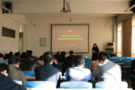 为进一步强化公司师生的理想信念教育,落实立德树人根本任务,推进党风廉政建设工作深入开展,营造公司风清气正的良好发展、育人环境。11月19日,公司党委副书记罗春燕同志组织召开了《廉政建设暨师德师风警示教育》职工大会,会上组织全体教师重温学习了《js33333金沙线路检测党员干部职工明底线守纪律40条不准》,通报了2019年以来师德失范行为警示教育案例,观看了《国企蛀虫》《圈子之害》警示教育专题片。