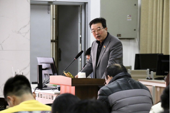 的学习和消化、理解和把握,迅速掀起学习宣传热潮。紧接着侯选明老师开始了辅导报告,侯老师从近代中国两件开天辟地的大事——中国共产党的成立和建立新中国两条脉络开题,首先从历史的角度论述了十九届五中全会的特殊性、关键性、重要性。然后,他就十九届五中全会的“三个文献”“一条主线”“四个层次”“五种力量”这四个角度深入解析党的十九届五中全会为我国擘画的未来发展宏伟蓝图,作出的应对变局、开辟新局的顶层设计,以及在党和国家发展进程中具有的全局性、历史性意义。