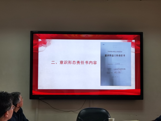 杨启毅书记在组织学习时指出,意识形态工作是我们党的一项极端重要的工作,意识形态安全关乎旗帜、关乎道路、关乎国家政治安全。党的十九大报告提出要牢牢掌握意识形态工作领导权,落实意识形态工作责任制。我们工作在高校,落实好意识形态工作责任制对于落实好立德树人根本任务至关重要。公司党委需要主动适应新形势、新任务,牢牢掌握意识形态工作的主动权,不断压实意识形态工作责任,巩固马克思主义在公司意识形态工作的指导地位,努力培养新时代中国特色社会主义的建设者和可靠接班人。