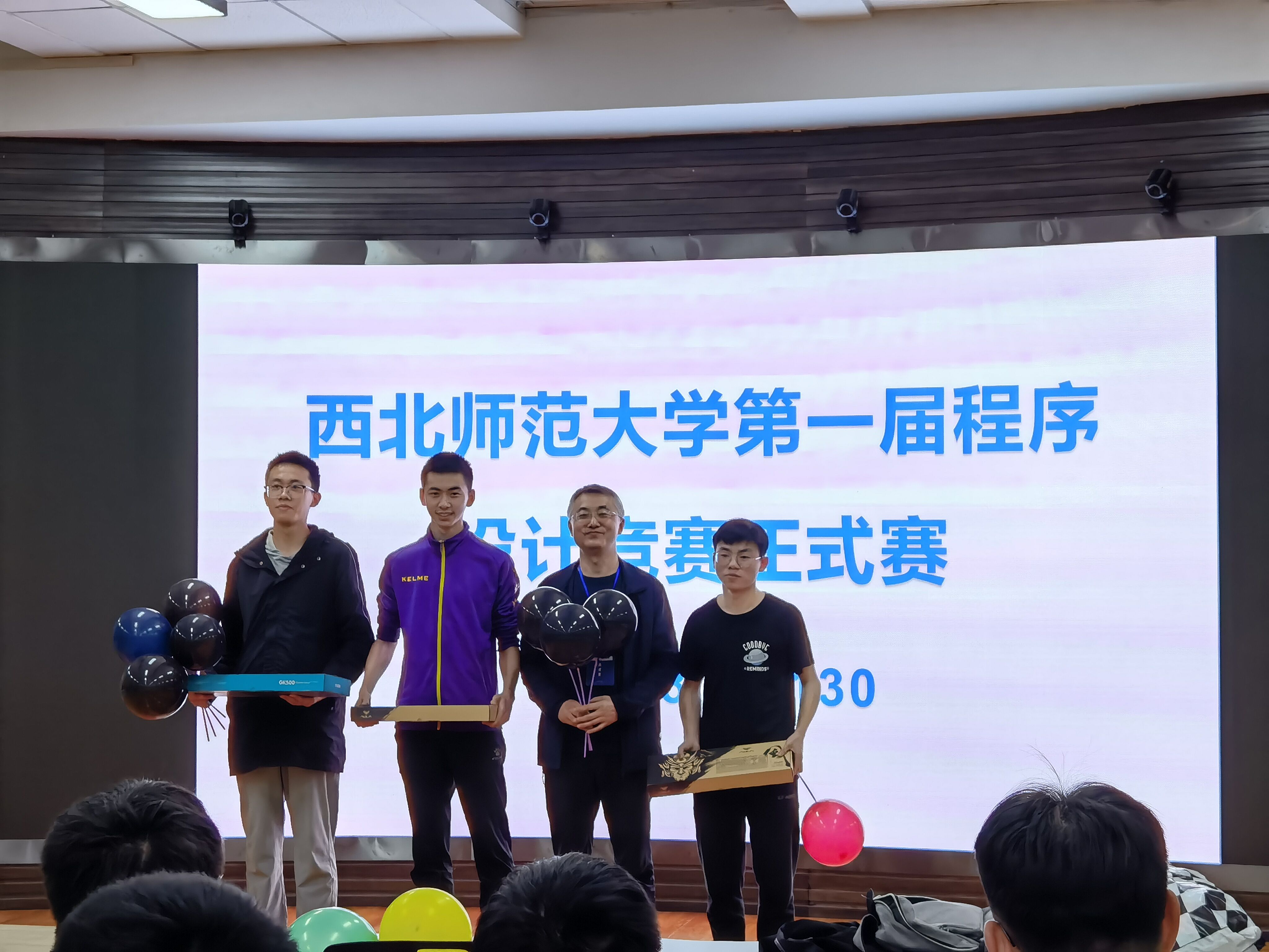 赛后,此次竞赛的负责人秦红武老师总结发言,并为获奖团队颁发奖品。此次竞赛在三个公司的支持和ICPC集训队成员的精心组织下取得了圆满成功,培养了同学们对程序设计的兴趣,增进了不同公司员工之间的交流,加强了同学们团队协作、解决问题的能力,为提升员工综合素质搭建了一个良好平台。
