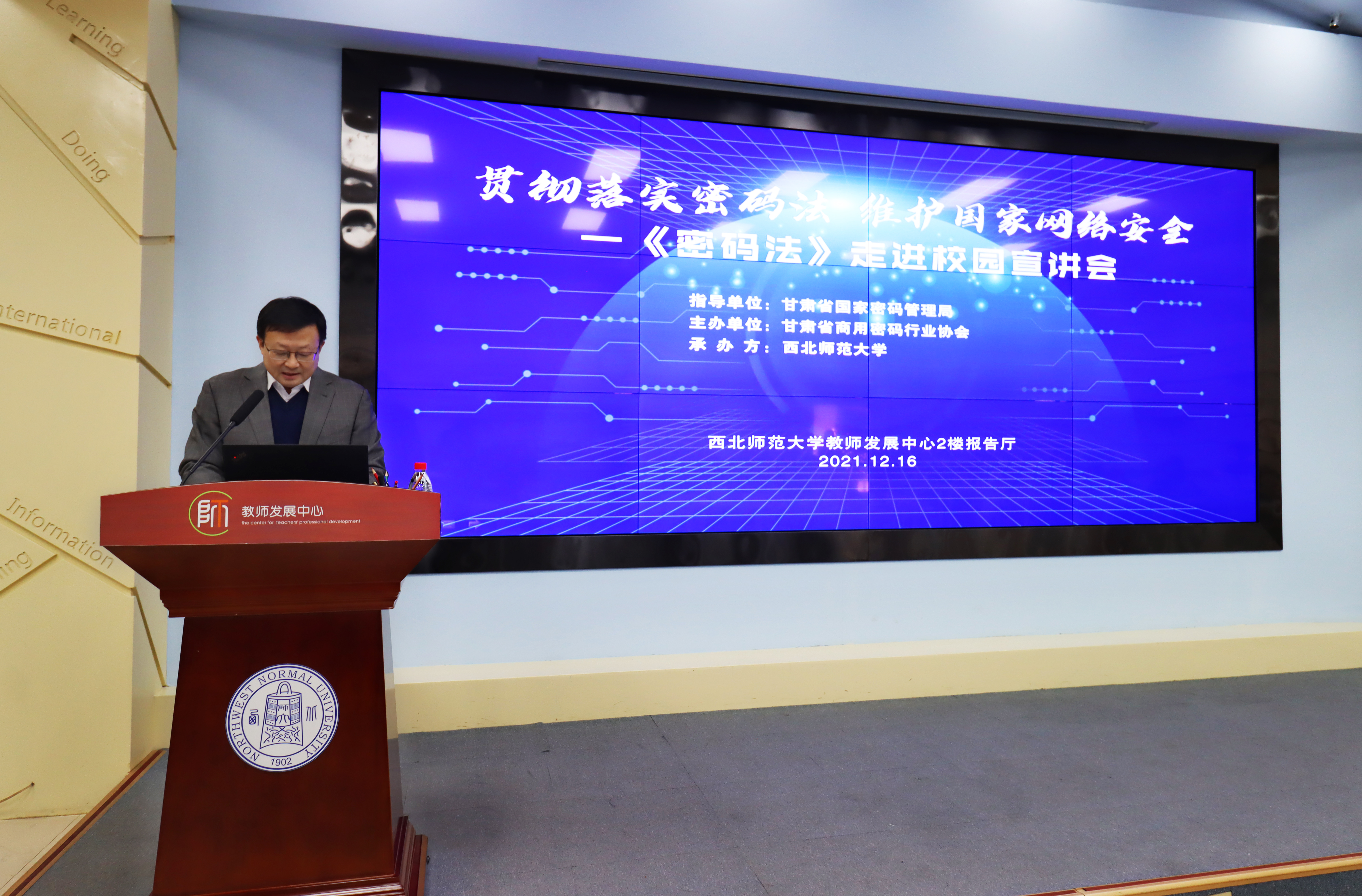 深入学习贯彻习近平法治思想和十九届六中全会精神,进一步增强广大师生的密码法制观念和宪法意识,js33333金沙线路检测在2021年12月16日承办了“贯彻落实密码法、维护国家网络安全”《密码法》走进校园宣讲活动。