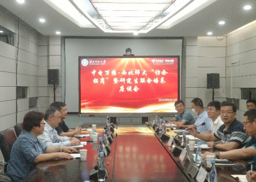 2022年6月1日下午,公司副经理秦红武教授带队赴中电万维信息技术有限责任公司(以下简称“中电万维”),举行研究生联合培养开展仪式暨“访企拓岗促就业”座谈会。会议由中电万维副总经理、教授级高级工程师、甘肃领军人才、公司电子信息硕士专业学位研究生实践指导教师赵武主持。