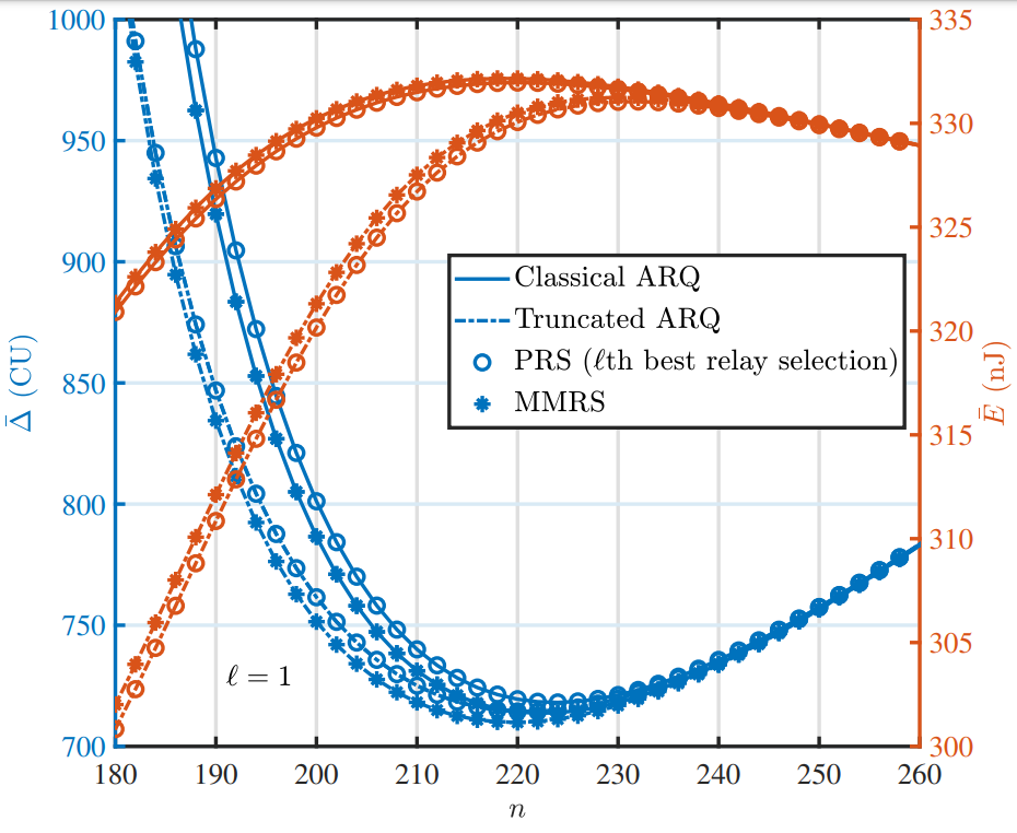 在物联网监测系统中,信息的实时传输和能量的高效利用是两个重要的关注点。然而,它们通常不能同时实现。论文面向双跳中继协作状态更新系统,研究了第l阶最佳中继选择策略和自动请求重传协议下系统信息年龄和能耗的内在折中关系。在部署的众多中继中,选择第l阶最佳中继来转发信源处的信息到信宿。当传输失败时,信源既可以重传失败的数据包以节省感知能耗,也可以感知和发送新的数据包以提高信息新鲜度。为此,论文考虑了经典自动请求重传和截断自动请求重传两种协议。通过考虑短包传输,推导了平均信息年龄和平均能耗的数学表达式,并最小化二者的加权和来寻求最优编码长度实现系统性能折中。
