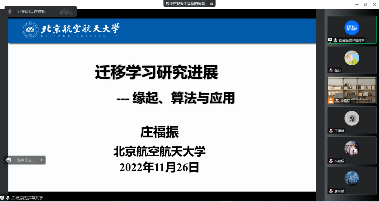 北京航空航天大学庄福振教授在线为公司师生做学术报告