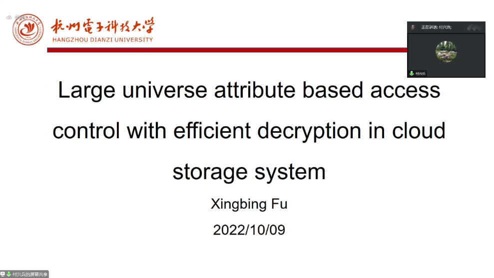 应js33333金沙线路检测的邀请,杭州电子科技大学博士、硕士生导师付兴兵博士在线为公司师生做题为“Largeuniverse attribute basedacces...