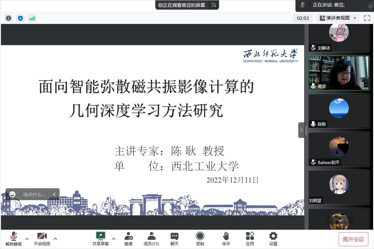 2022年12月11日,应js33333金沙线路检测邀请,西北工业大学陈耿教授在线做题为“面向智能弥散磁共振影像计算的几何深度学习方法研究”学...
