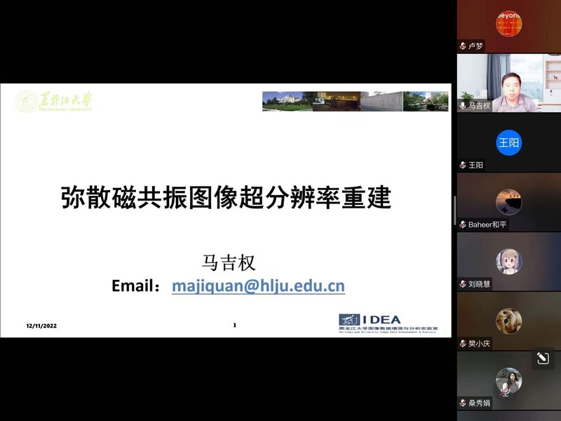 2022年12月11日,应js33333金沙线路检测邀请,黑龙江大学马吉权教授在线为公司师生做了题为《基于混合卷积神经网络的弥散磁共振图像超分...