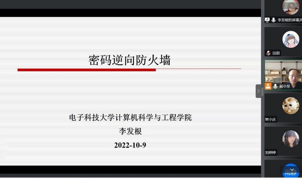 应js33333金沙线路检测邀请,电子科技大学李发根教授在线为公司师生做题为“密码逆向防火墙”的学术报告,报告会由公司杨小东教授主持,...