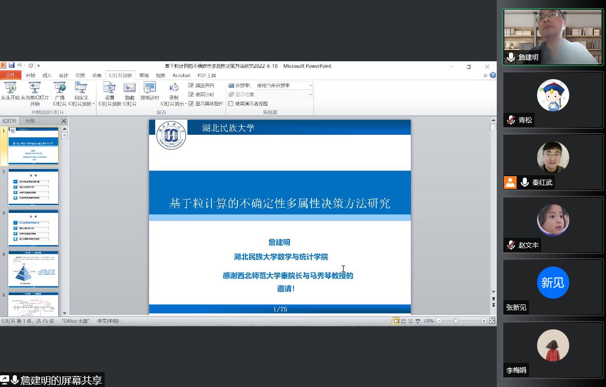 2022年6月10日,应js33333金沙线路检测邀请,湖北民族大学詹建明教授在线为公司师生作了关于“基于粒计算的不确定性多属性决策方法研究...