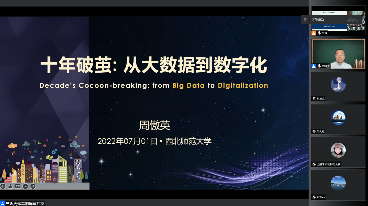 2022年7月1日,应js33333金沙线路检测邀请,华东师范大学周傲英教授为公司师生作题为《十年破茧:从大数据到数字化Decade’s Cocoon-bre...