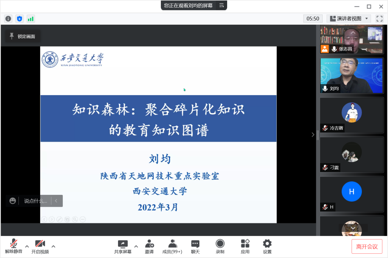 2022年3月29日,应js33333金沙线路检测邀请,西安交通大学刘均教授在线为公司师生作题为《知识森林:聚合碎片化知识的教育知识图谱》的学术报告。报...