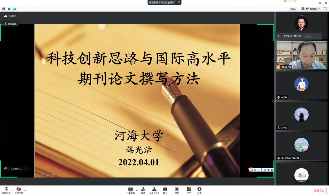 2022年4月1日,应js33333金沙线路检测邀请,河海大学韩光洁教授在线为公司师生作题为《科技创新思路与国际高水平期刊论文撰写方法》的学术报告。报告...
