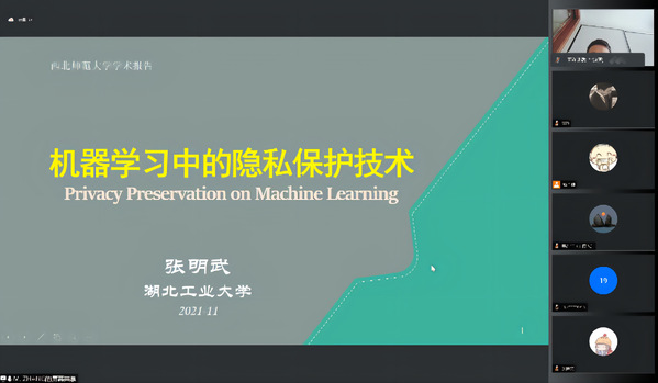 2021年11月7日,按照公司线上学术月活动方案,公司邀请湖北工业大学张明武教授在线为公司师生作题为《机器学习中的隐私保护技术》的学术报告,报告会...