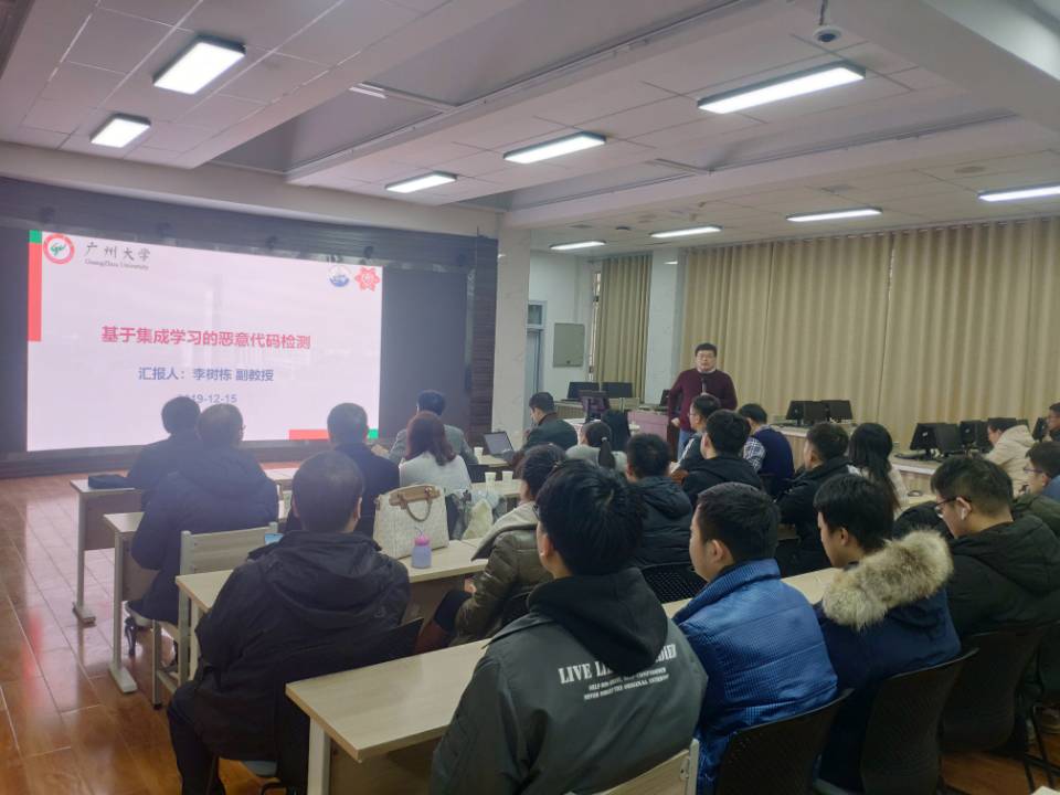 2019年12月15日,公司邀请广州大学树栋副教授在9号楼D01为公司师生做了题为《基于集成策略的恶意代码检测研究》的学术报告。公司教师及各年级研究生共...